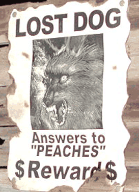 Greyhaunt Manor 2005 - PeachesThe "lost dog" signs we hung around the 2004 haunt proved to be quite popular, so we decided that Peaches should make an appearance in 2005. As luck would have it, we found a werewolf costume with an amazing resemblance to the picture on the "lost dog" sign (see the similarity demonstrated in the animation at the bottom of this page). We put Peaches' "lair" near the end of the haunt so she could make sure there weren't any stragglers. |